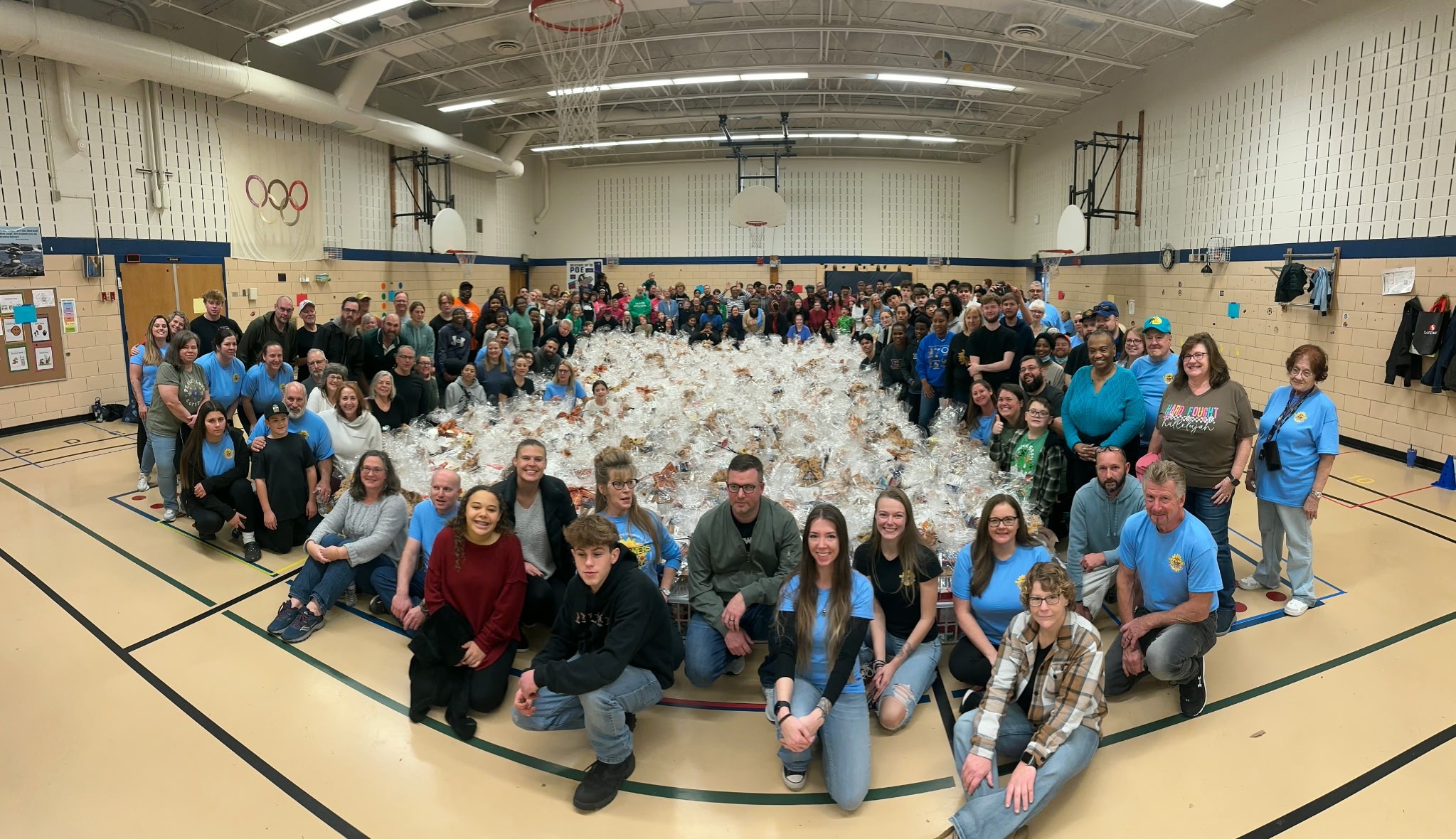 We hosted our assembly event at Ruth Parker Eason School, and the outpouring of support was truly overwhelming. Volunteers filled not only the gymnasium, but also three additional classrooms as we organized and prepared baskets for distribution. The energy in those rooms was filled with purpose, generosity, and gratitude.