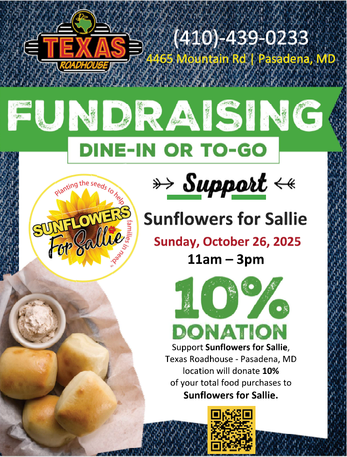 The exceptional team at Texas Roadhouse, Pasadena has generously pledge to donate 10% of food purchases made during these hours to Sunflowers for Sallie, fueling our mission to spread love, hope, and support to local families in need. By savoring a delicious meal you’ll be instrumental and creating opportunities for underprivileged community members to enjoy similar experiences during the upcoming festive season, inspiring a ripple effect of kindness and compassion.